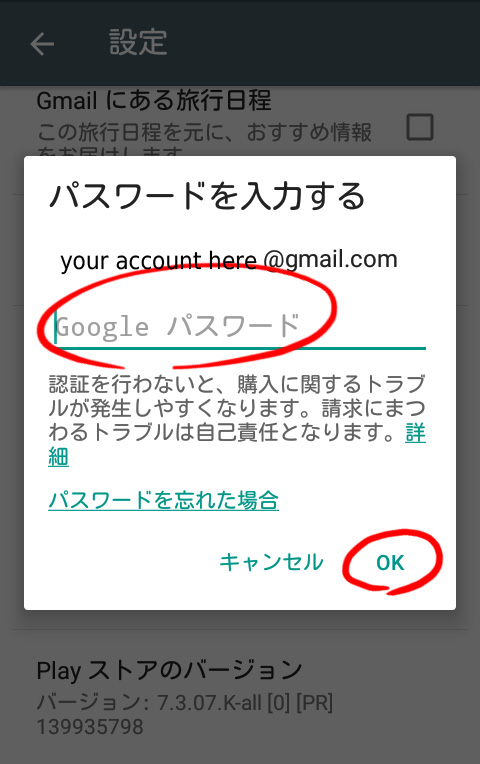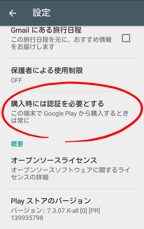 詳しくは、Google公式の こちら(購入時にはパスワードまたは認証が必要 - Google Play ヘルプ) をご覧ください。